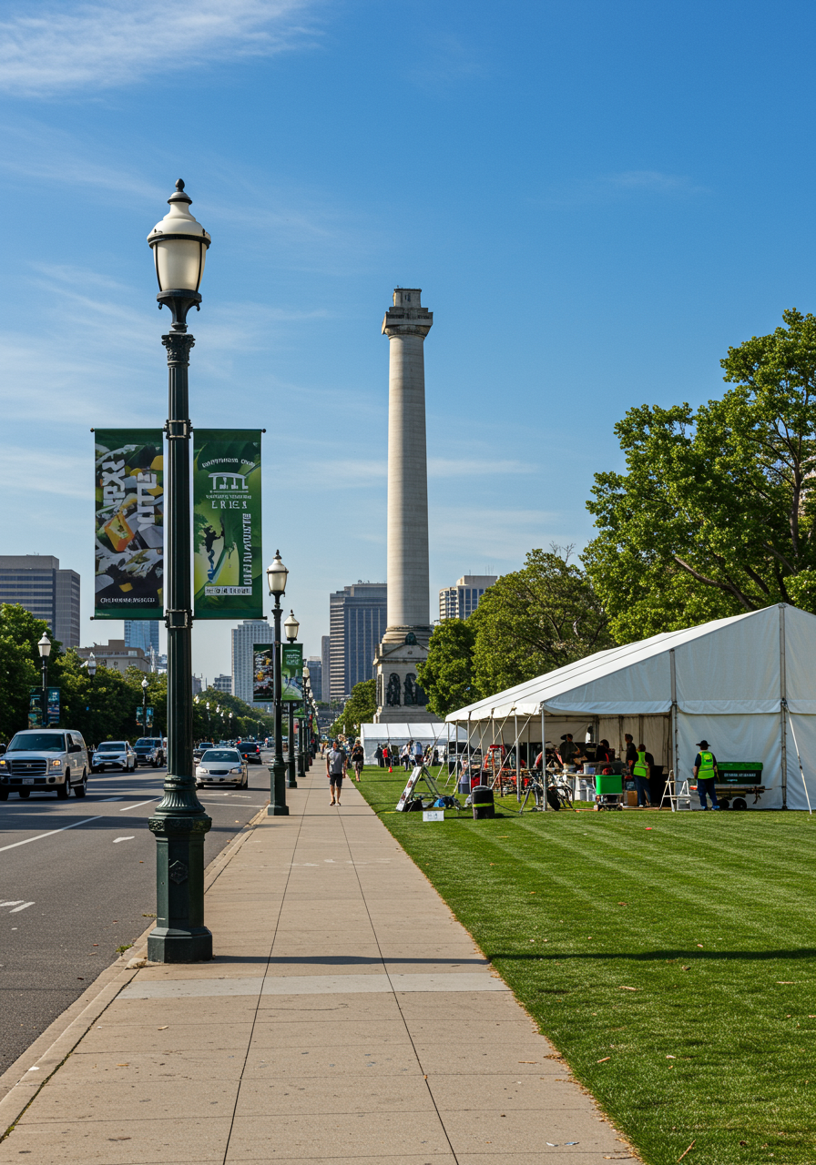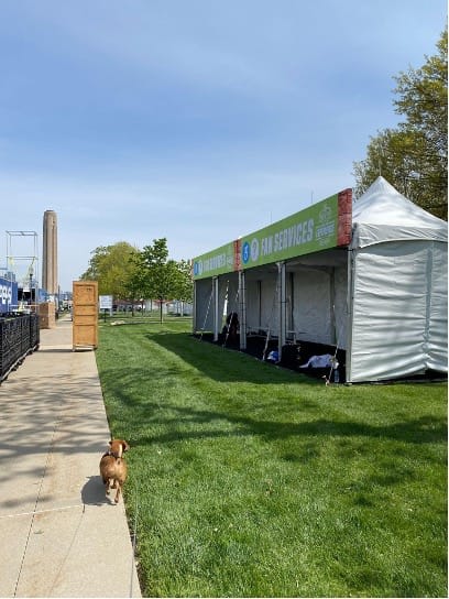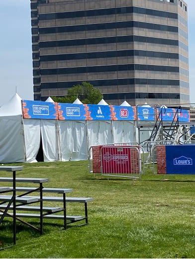 Here is the Autograph Stage and Sports Radio Stations on the East Lawn.